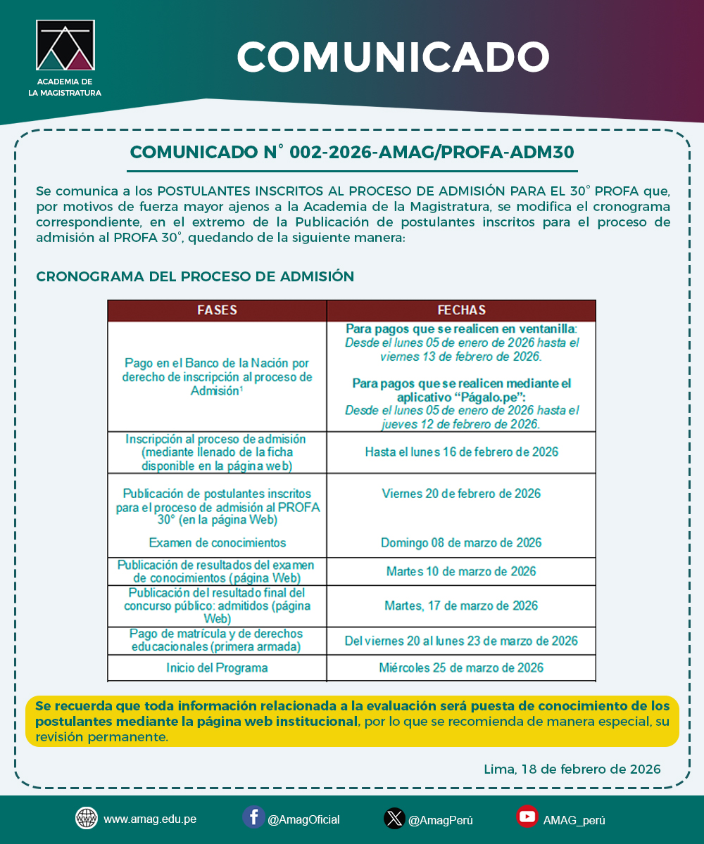CONSULTAS: admision30profa@magistratura.edu.pe